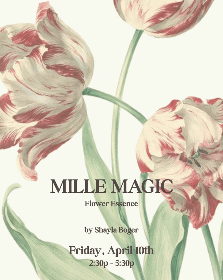 Join MILLE FRIDAY April 10th at for the launch of MILLE MAGIC Flower Essence by Shayla Boger Skin Therapy